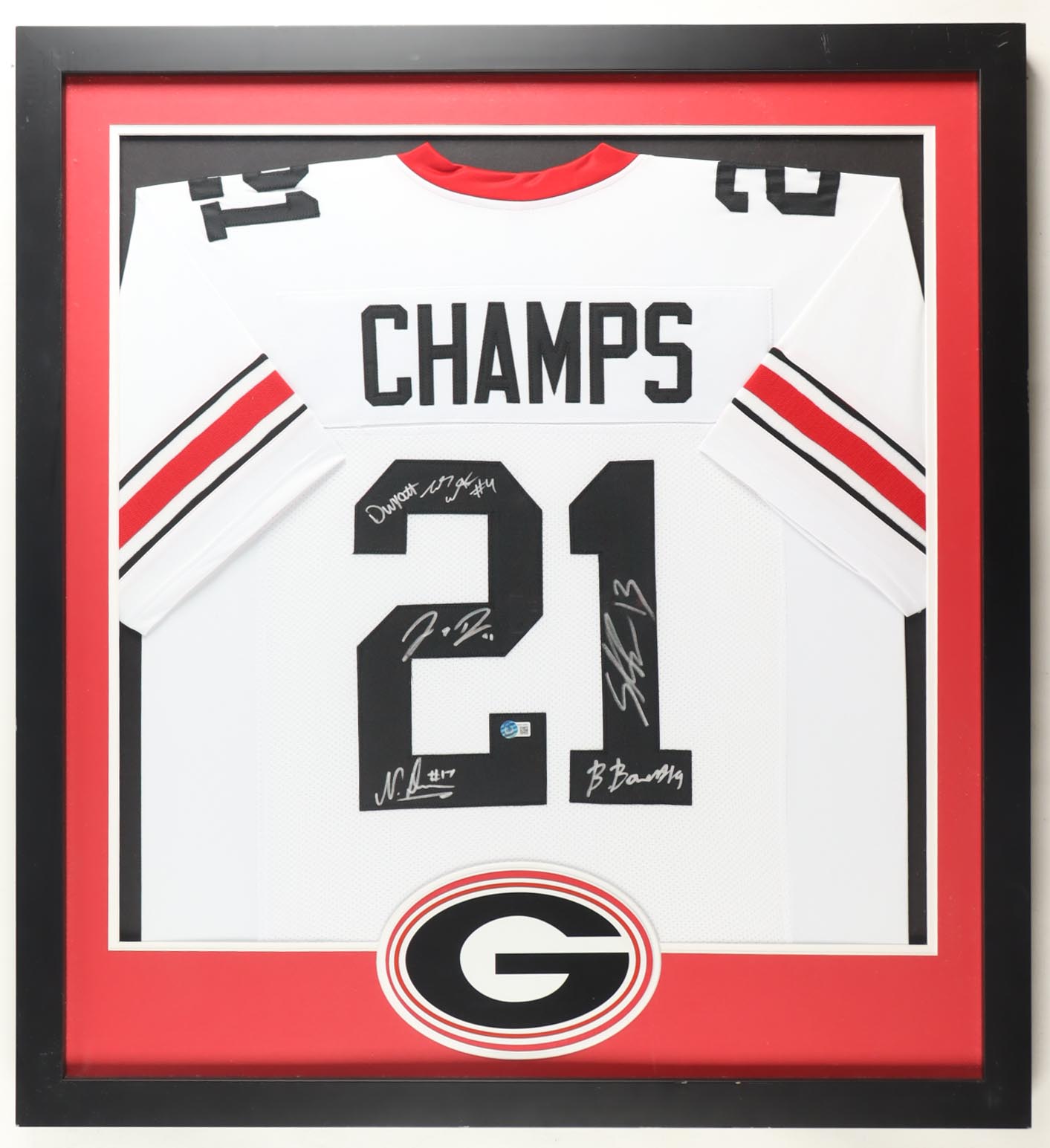 Custom Framed Jersey Display Signed by (5) with Jordan Davis, James Cook, Devonte Wyatt, Nakobe Dean (Beckett)