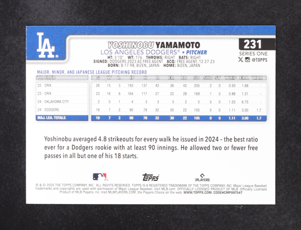 Yoshinobu Yamamoto 2025 Topps Future Stars #231