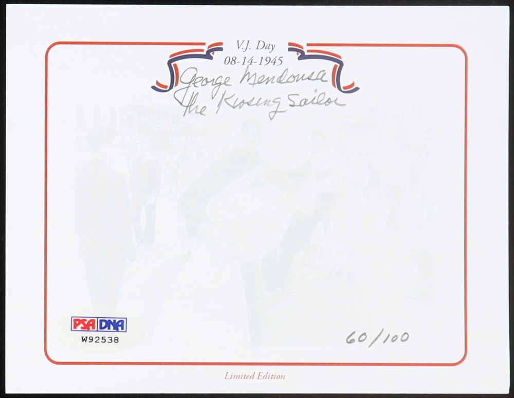 George Mendonsa Signed LE "The Kissing Sailor" Bookplate Inscribed "The Kissing Sailor" (PSA)
