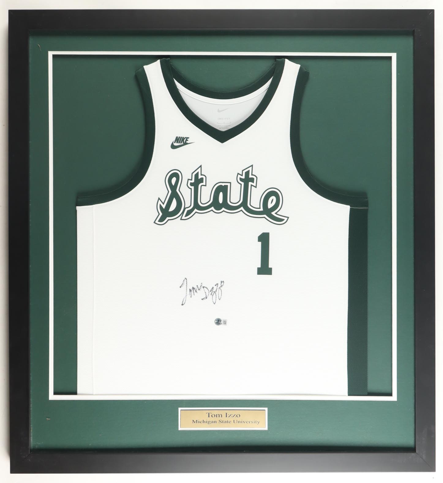 Custom frame measures approximately 35" x 38" in size and features a jersey that has been hand-signed by Tom Izzo (HOF).