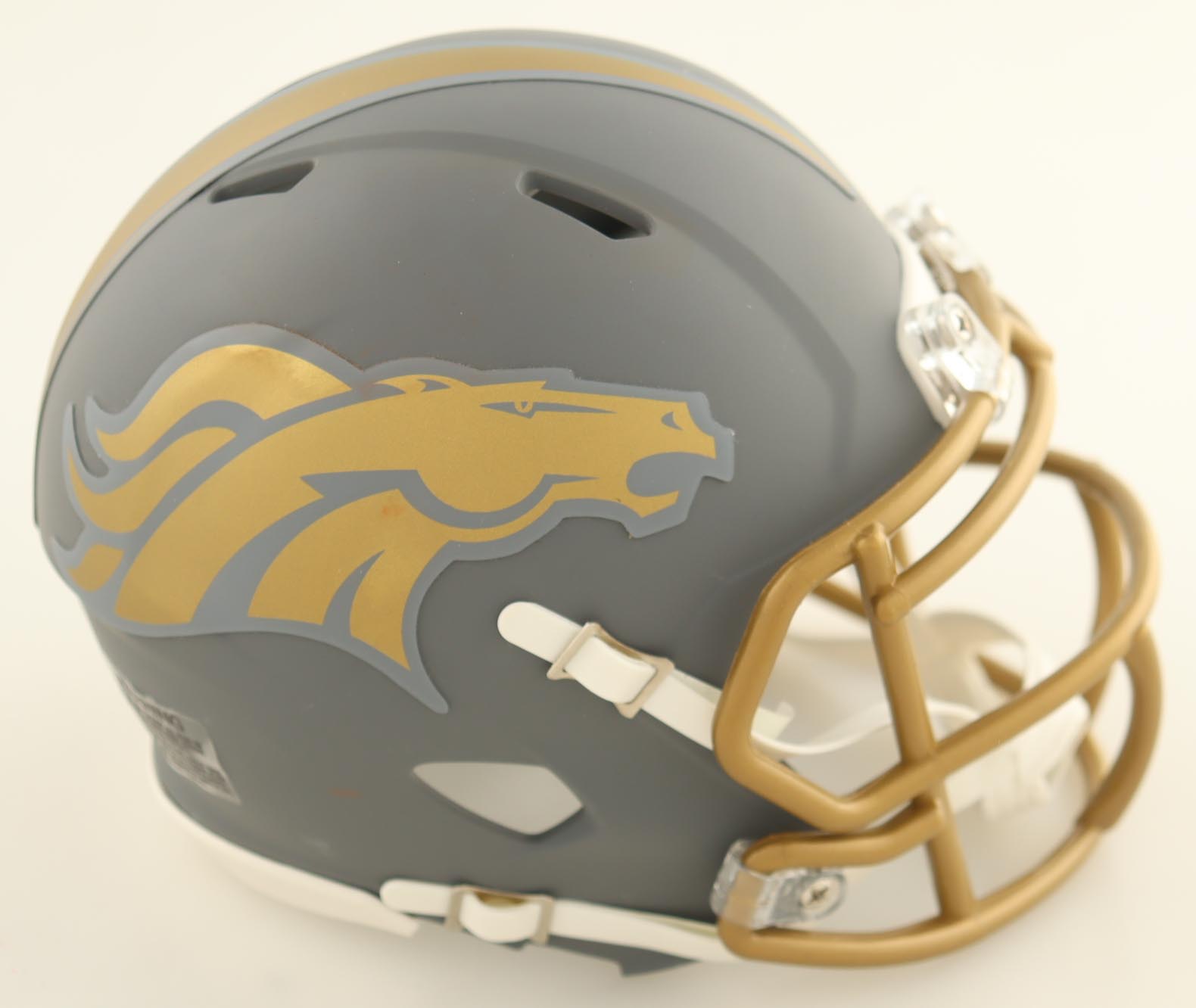 Riddell Denver Broncos Slate Alternate Speed mini helmet. Hand-signed by Champ Bailey (HOF).