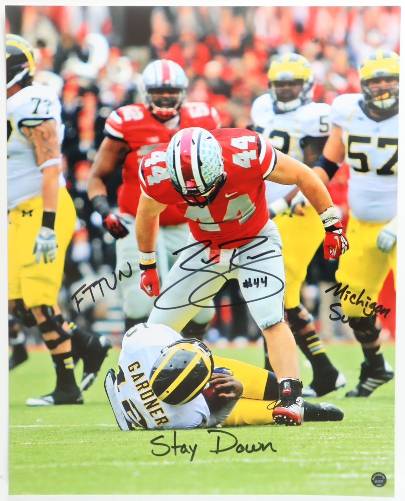 Zach Boren Signed Ohio State Buckeyes 16x20 Photo with (3) Inscriptions (Authentic Ink)