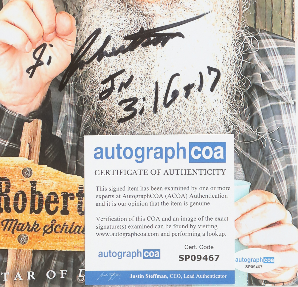 Photo measures 8" x 10" in size and has been hand-signed and inscribed by Si Robertson.
