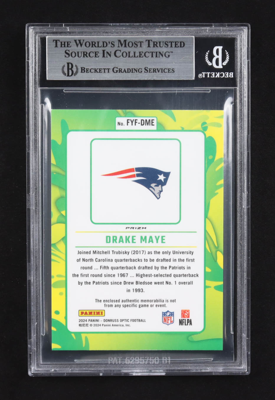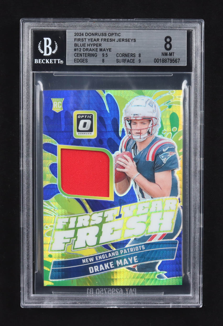 Drake Maye 2024 Donruss Optic First Year Fresh Jerseys Blue Hyper #FYF-DME RC (BGS 8)