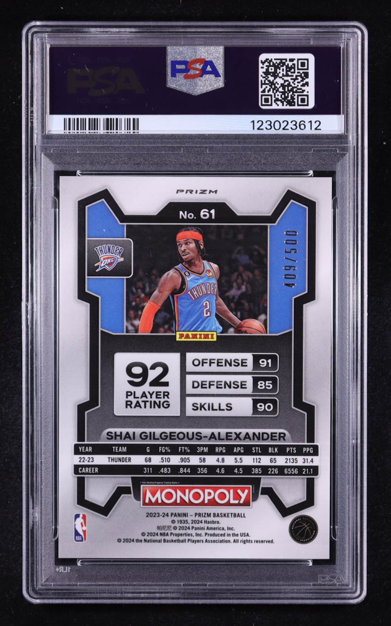 Shai Gilgeous-Alexander 2023-24 Panini Prizm Monopoly Gold Millionaire Shimmer #61 #409/500 (PSA 10)