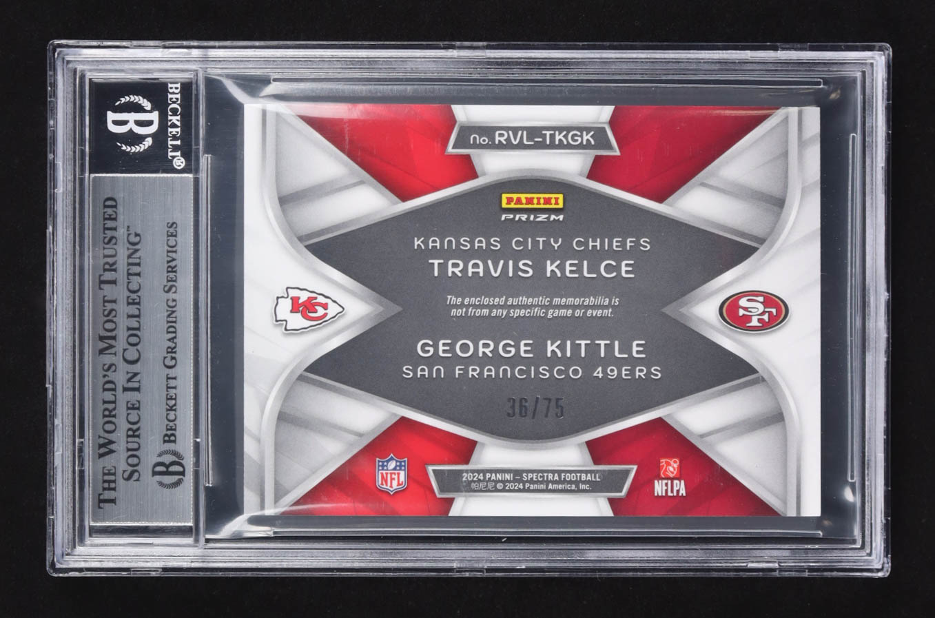 George Kittle / Travis Kelce 2024 Panini Spectra Rivals Materials Hyper Prizm #RVL-TKGK #36/75 (BGS 6)