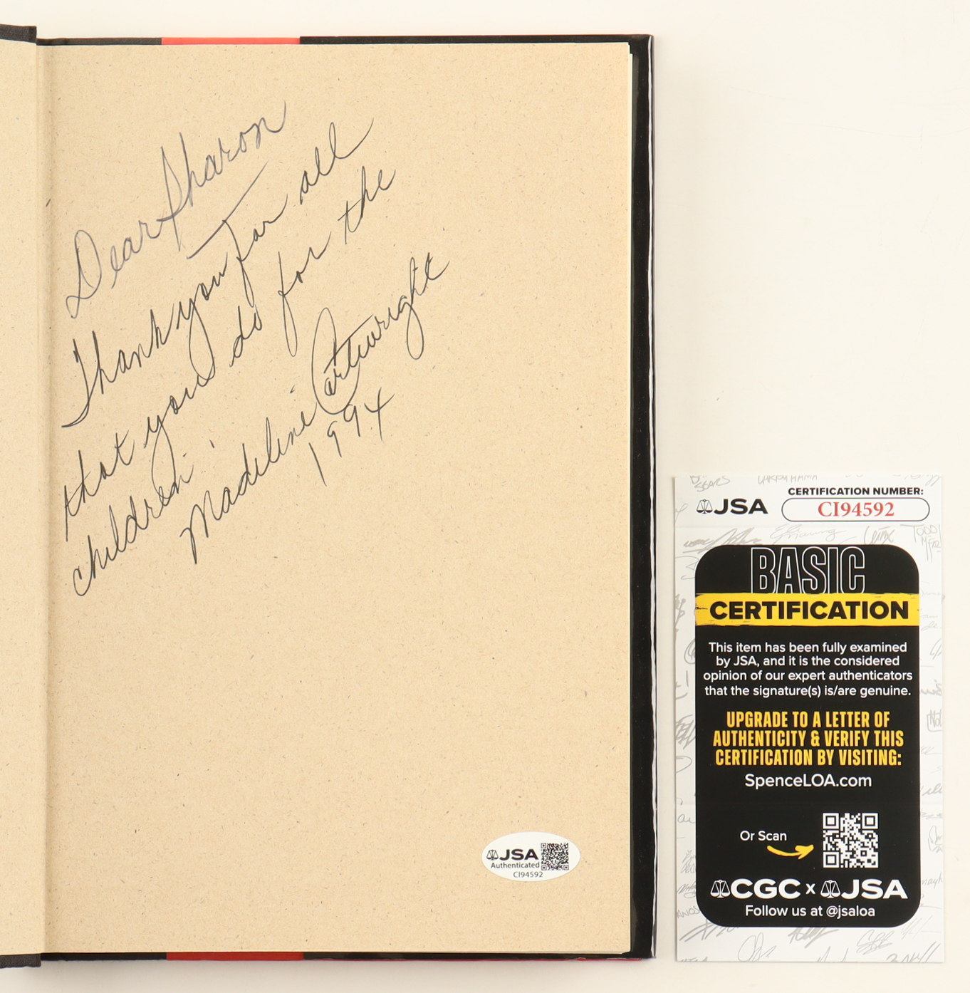 Hardcover has been hand-signed and inscribed on an inside page by Madeline Cartwright. The inscription has been personalized to "Sharon."