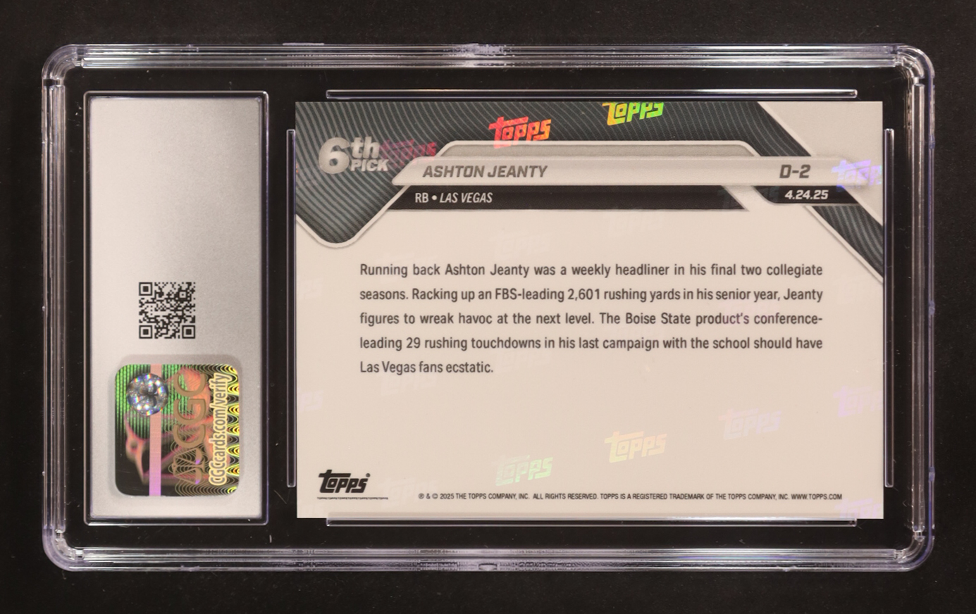 Ashton Jeanty 2025 Topps Now Draft #D2 RC (CGC 10)