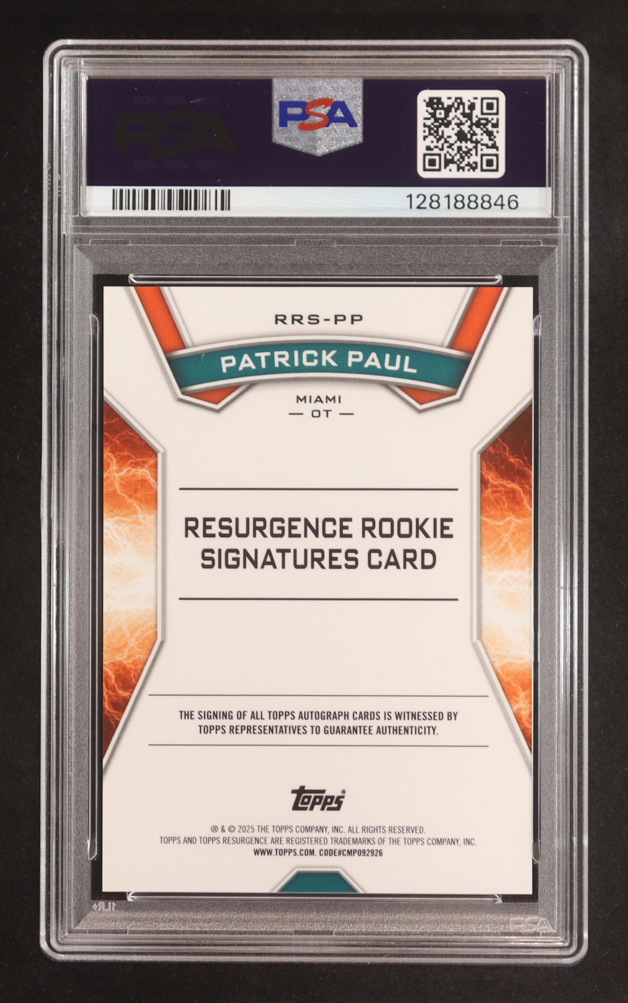 Patrick Paul 2024 Topps Resurgence Resurgence Rookie Signatures #RRSPP RC (PSA 8 | Autograph Graded PSA 10)