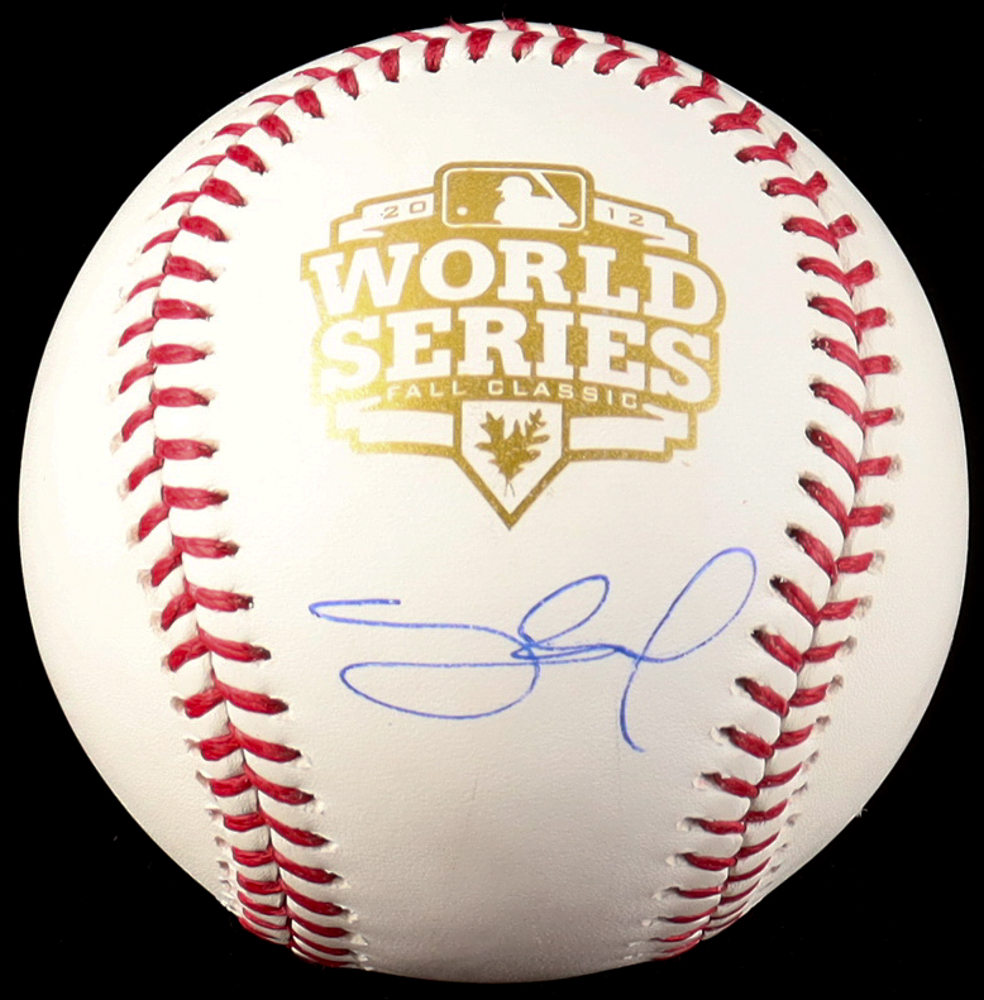 Rawlings Official 2012 World Series baseball. Hand-signed by Pablo Sandoval (San Francisco Giants).