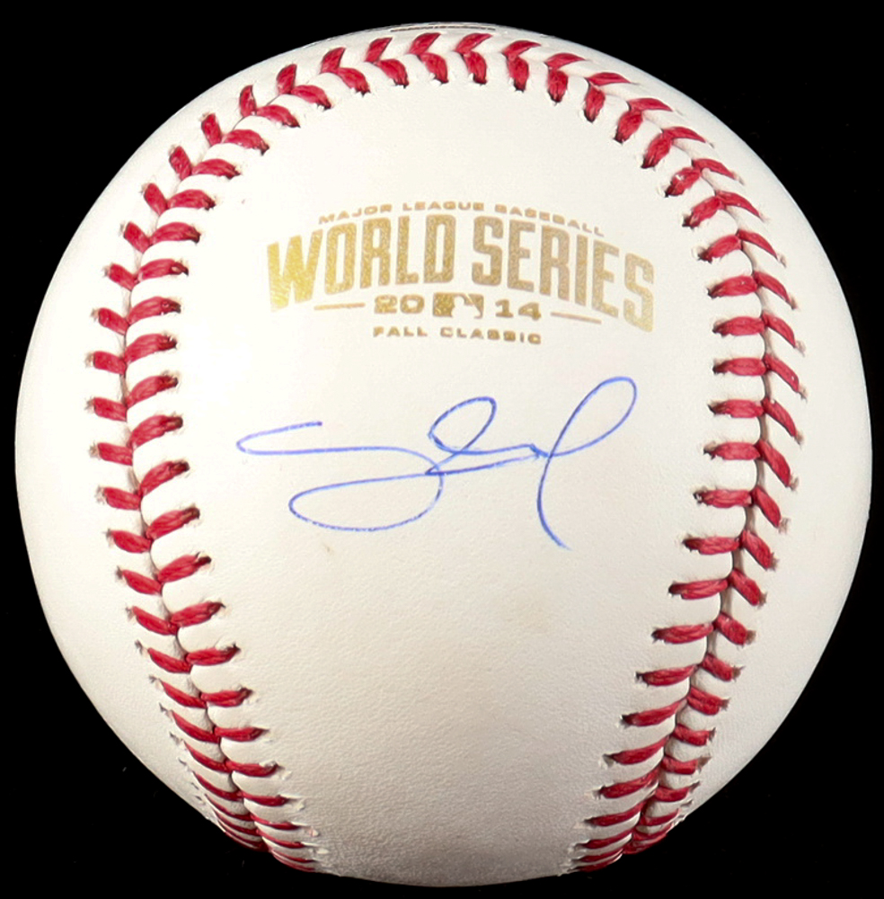 Rawlings Official 2014 World Series baseball. Hand-signed by Pablo Sandoval (San Francisco Giants).