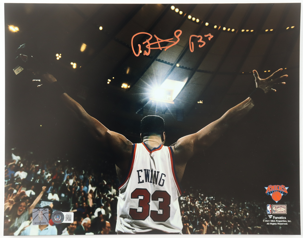 Photo measures 11" x 14" in size. Hand-signed by Patrick Ewing (New York Knicks, HOF).