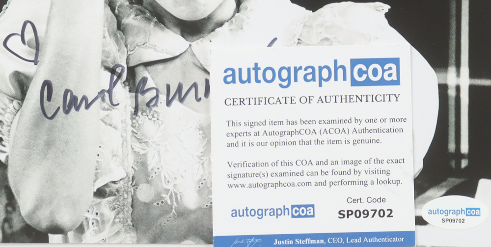 Photo measures 8" x 10" in size and has been hand-signed by Carol Burnett.