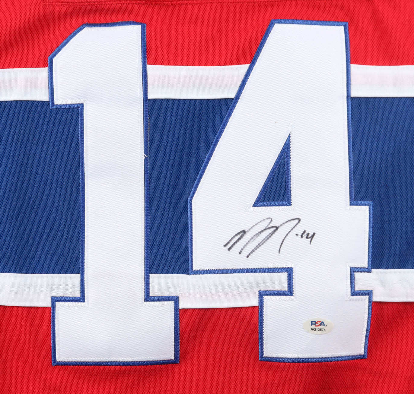 Custom jersey with everything sewn on, size XL. Hand-signed by Nick Suzuki.