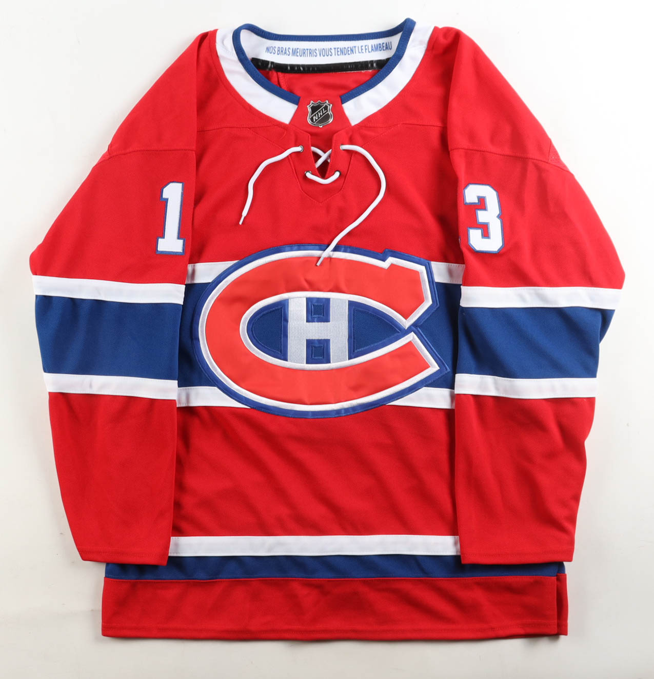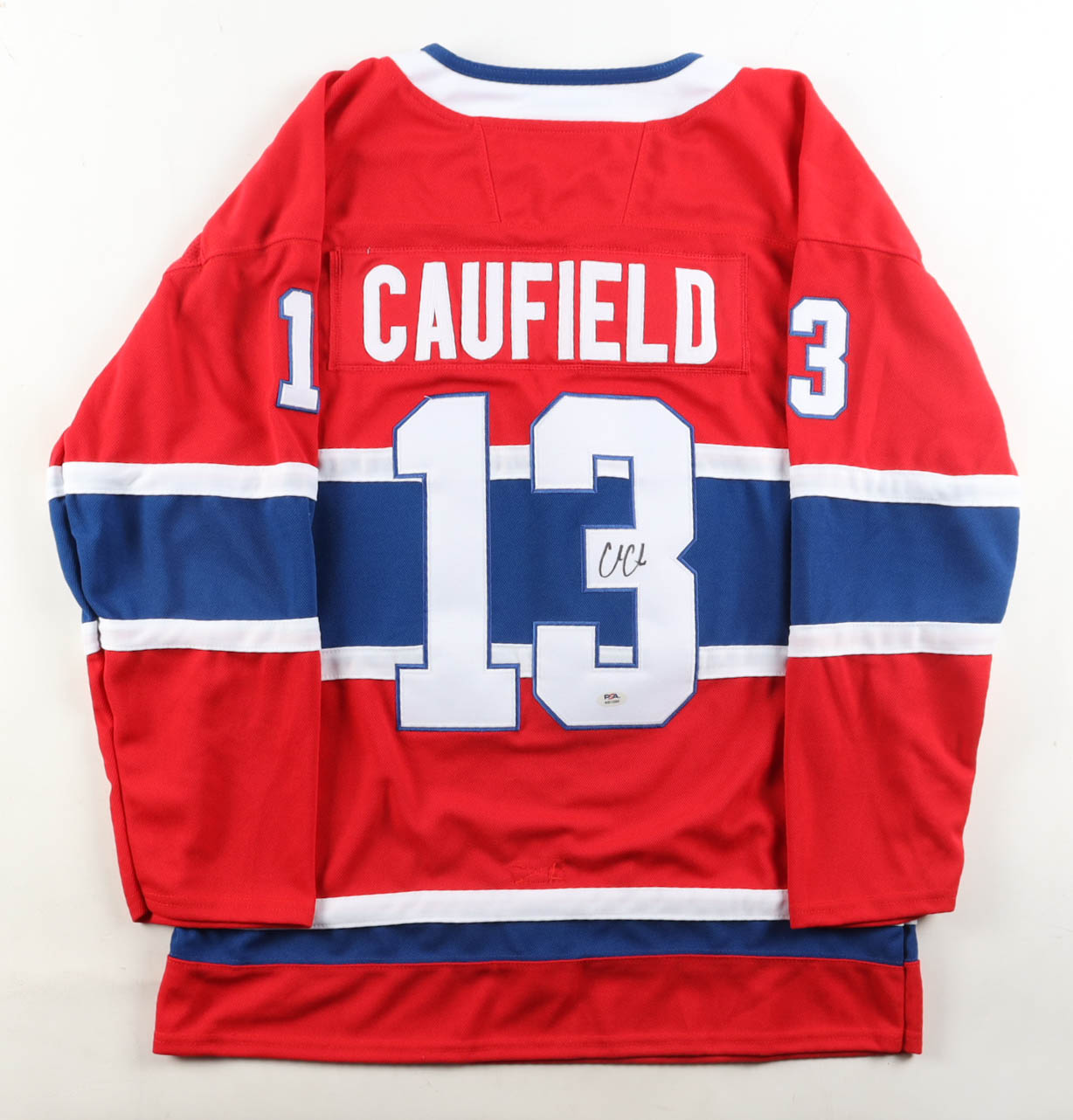 Custom jersey with everything sewn on, size XL. Hand-signed by Cole Caufield.