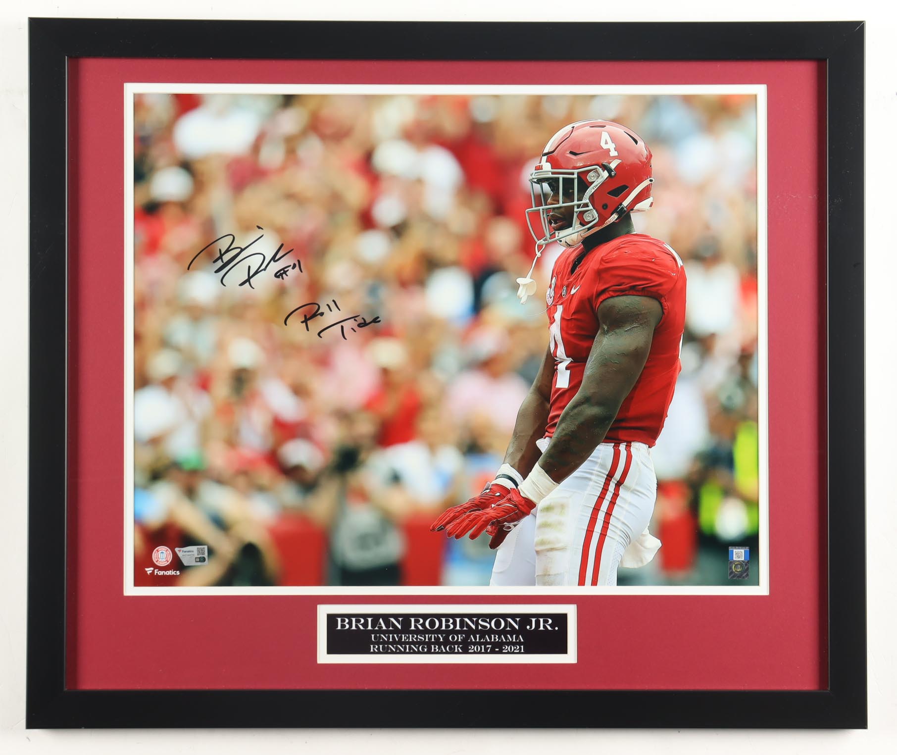 Brian Robinson Jr. Signed Alabama Crimson Tide Custom Framed Photo Display Inscribed "Roll Tide" (Fanatics)