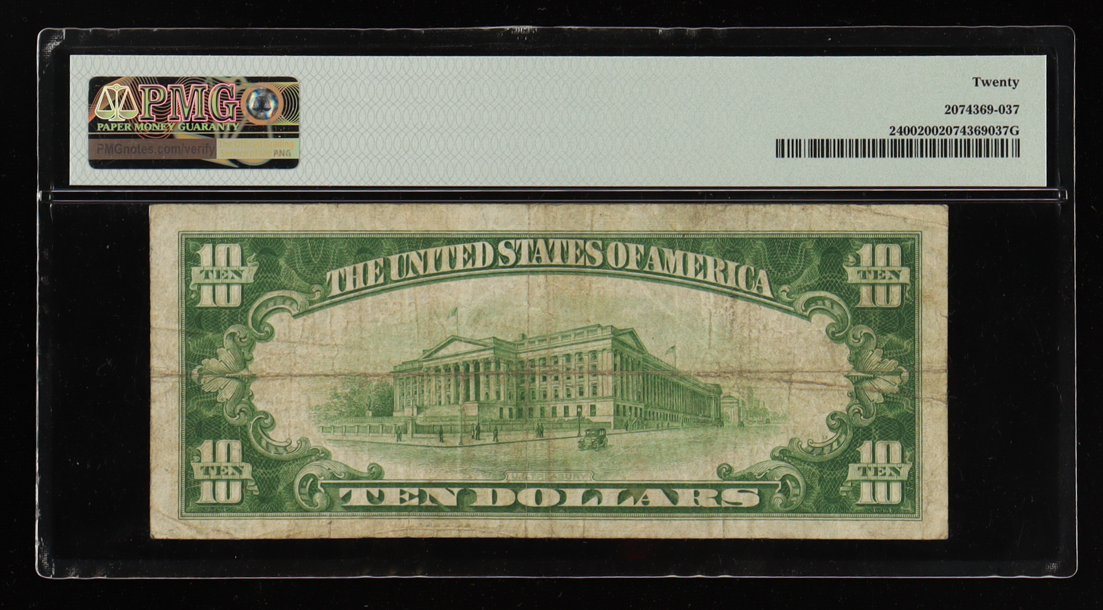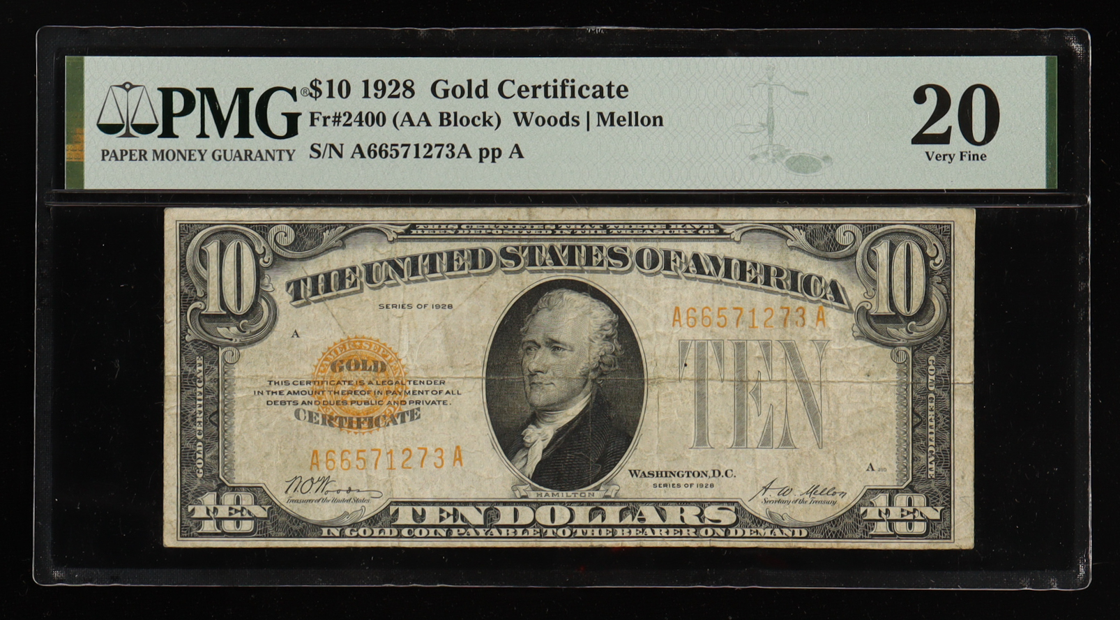 1928 $10 Gold Certificate AA Block (PMG 20 VF)