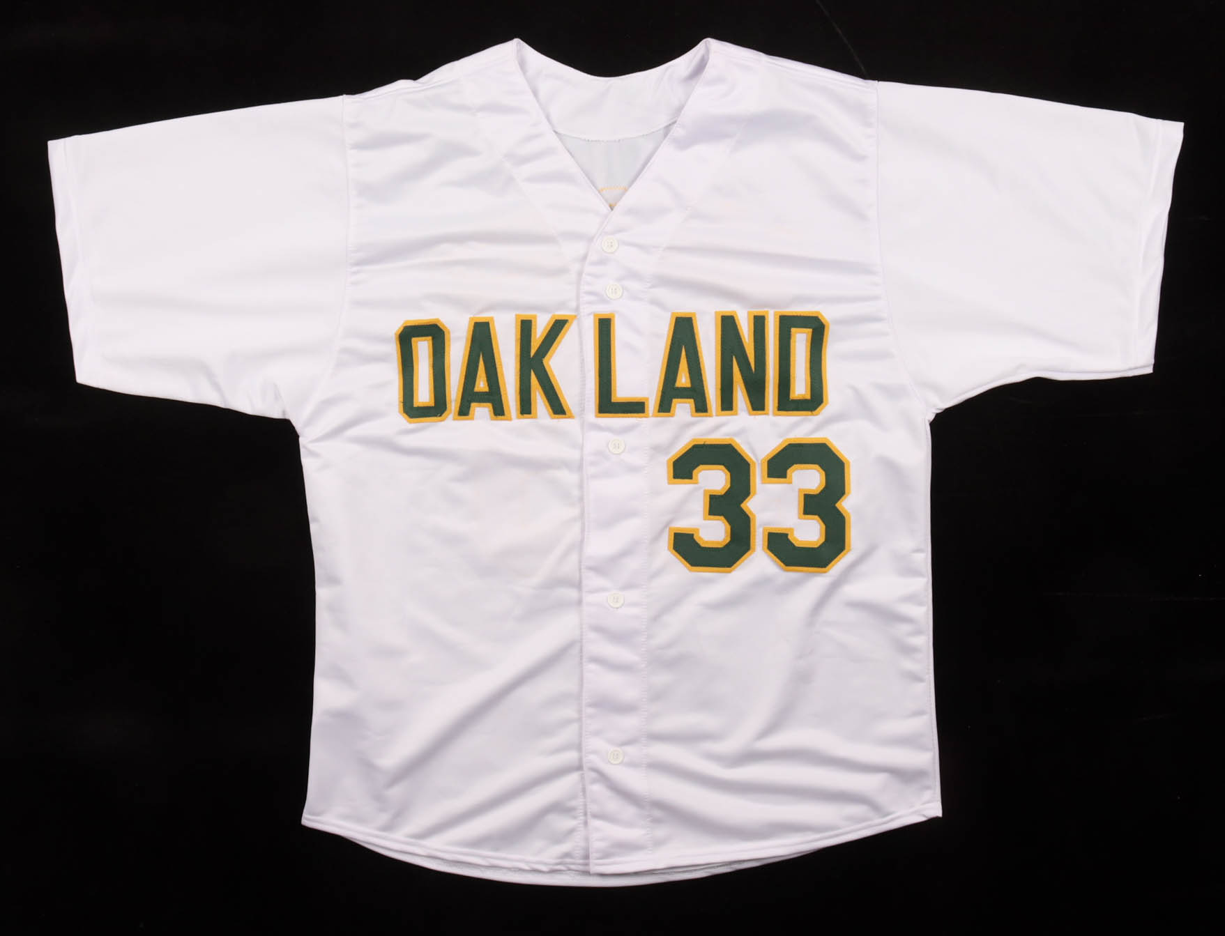 Custom jersey with everything sewn on, size XL. Hand-signed by Jose Canseco (Oakland Athletics).