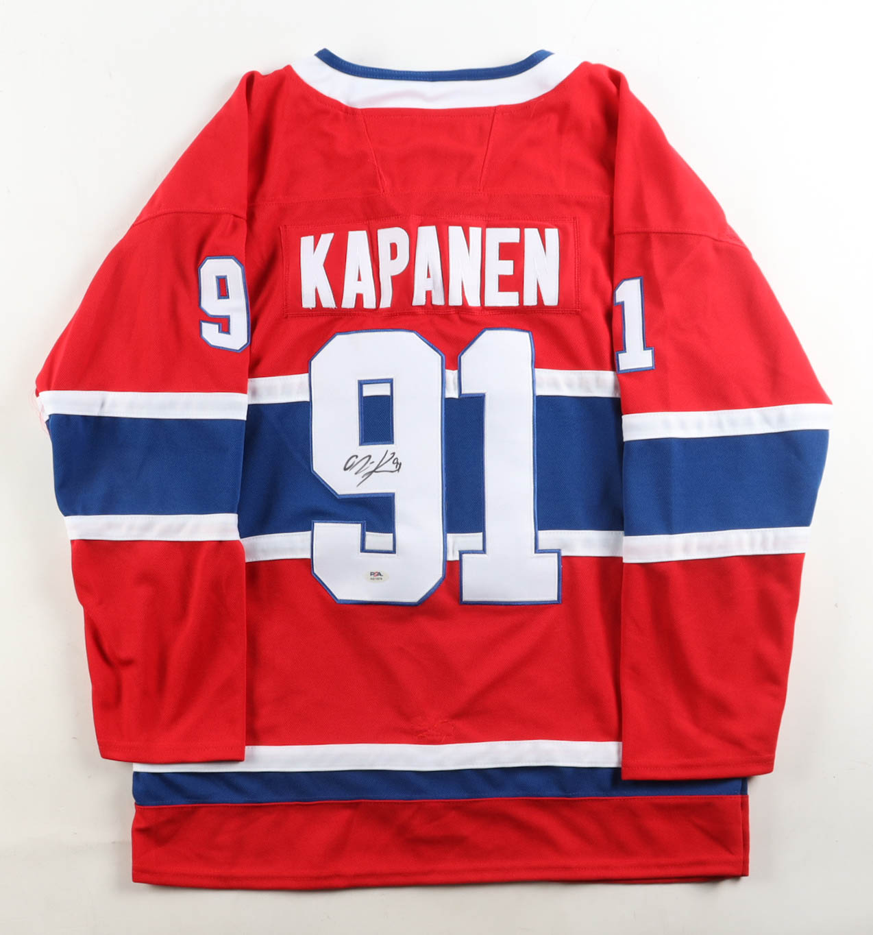 Custom jersey with everything sewn on, size XL. Hand-signed by Oliver Kapanen.