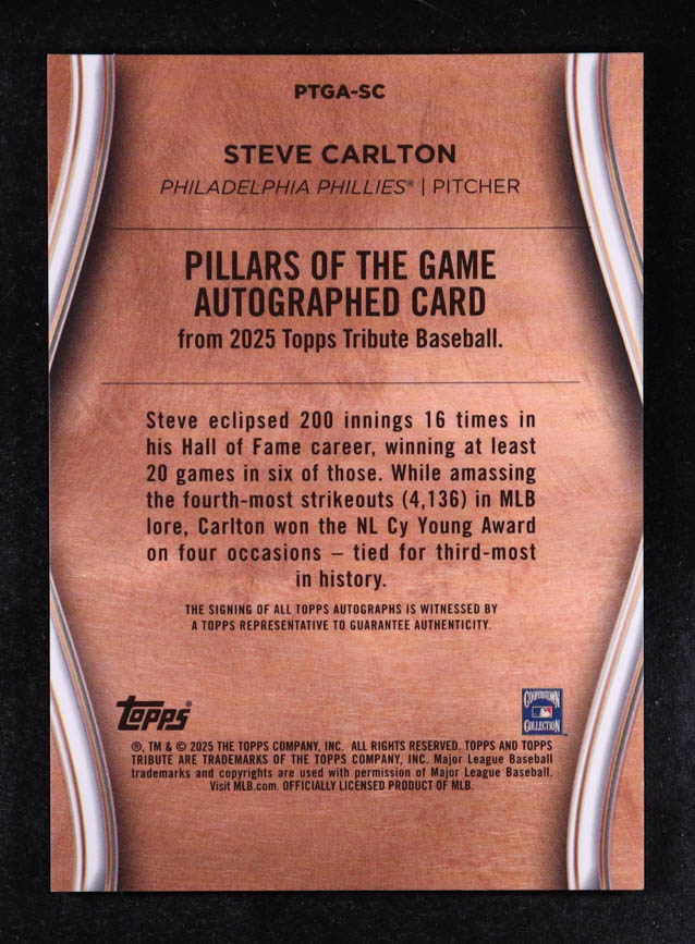 Steve Carlton 2025 Topps Tribute Pillars of the Game Autographs #PTGASC #162/199