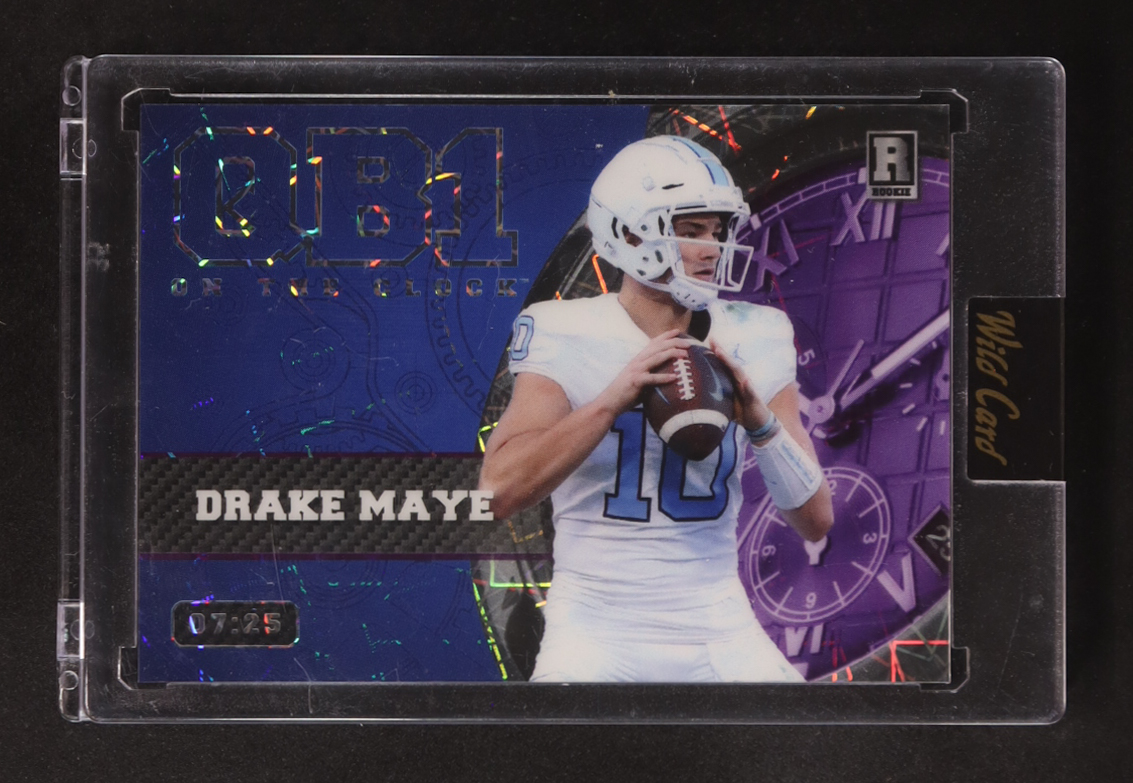 Drake Maye 2023 Wild Card QB1 On The Clock Blue Purple Lazer #OCW-DM2 #07/25 RC