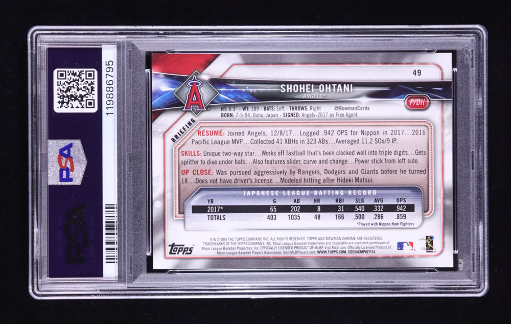 Shohei Ohtani 2018 Bowman #49 RC (PSA 10)