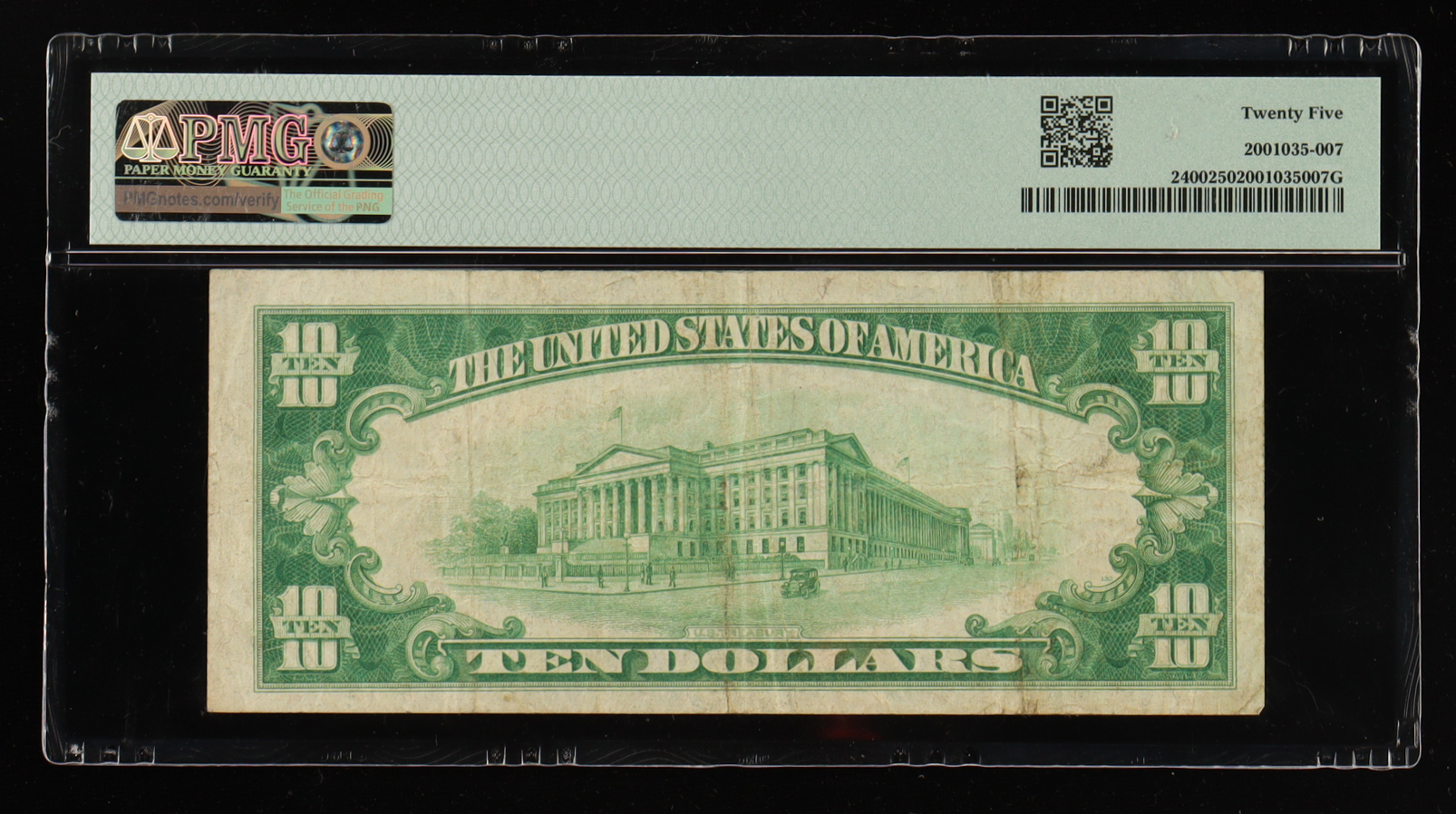 Certificate has been graded PMG 25 VF. Please see photos for details regarding the currency.