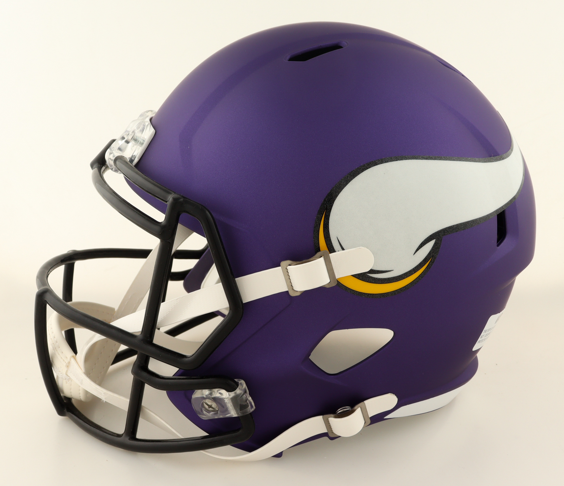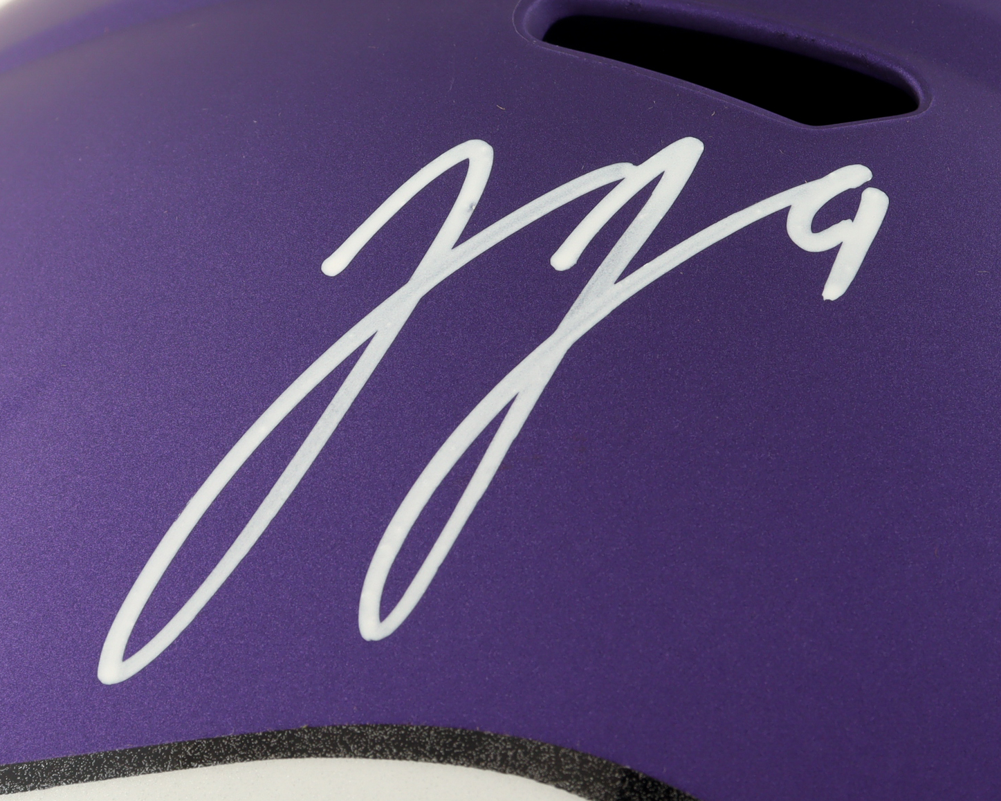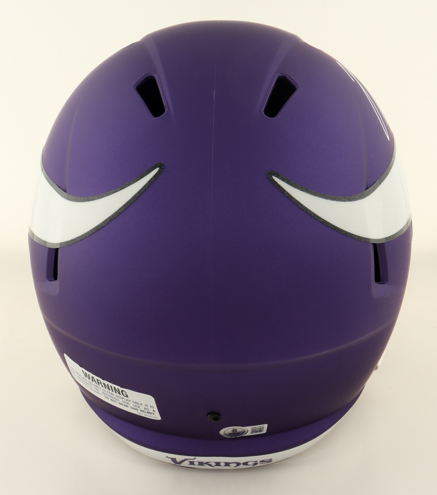 Riddell Minnesota Vikings full-size replica Speed helmet has been hand-signed by J. J. McCarthy
