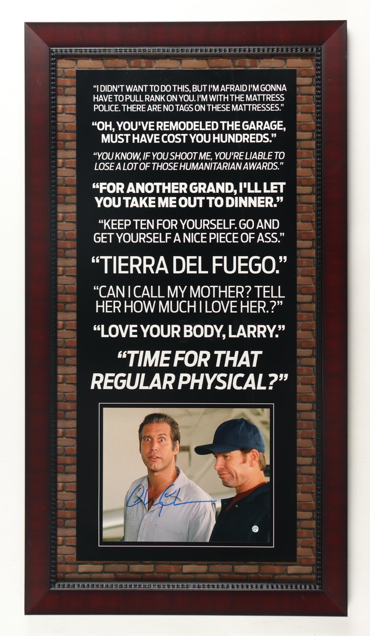 Custom frame measures approximately 19" x 35" in size and has been hand-signed by Chevy Chase (Irwin M. Fletcher). Please see photos for details regarding the item.