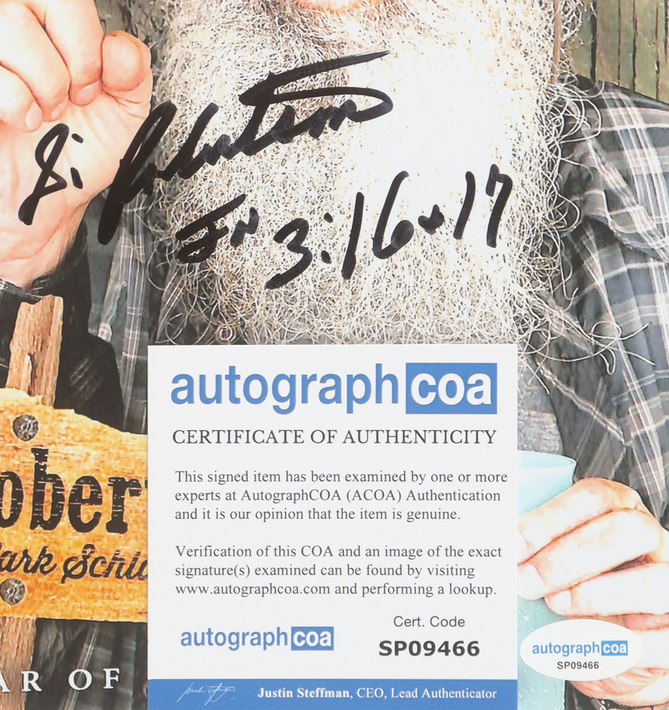 Photo measures 8" x 10" in size and has been hand-signed and inscribed by Si Robertson.