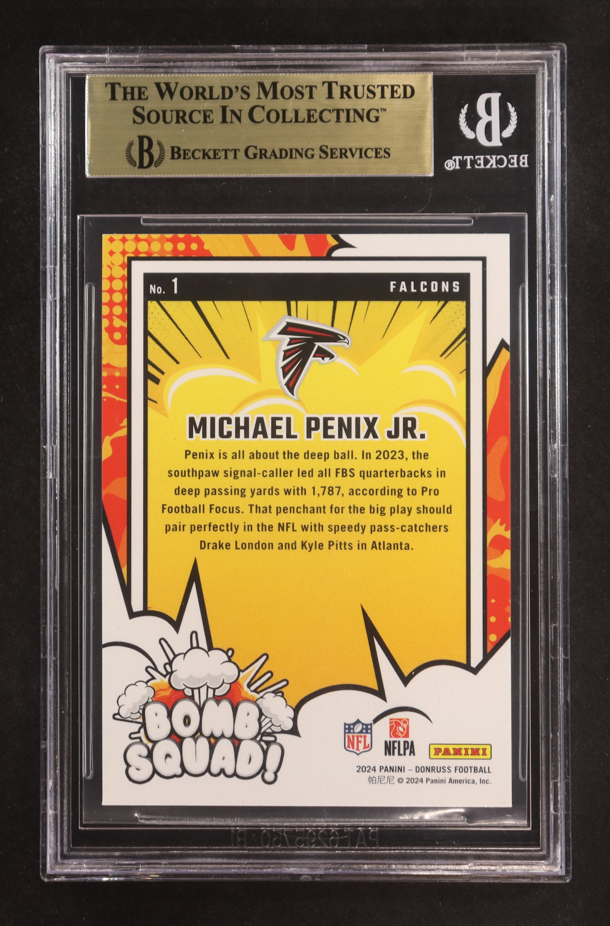 Michael Penix Jr. 2024 Panini Donruss Bomb Squad #1 RC (BGS 9.5)