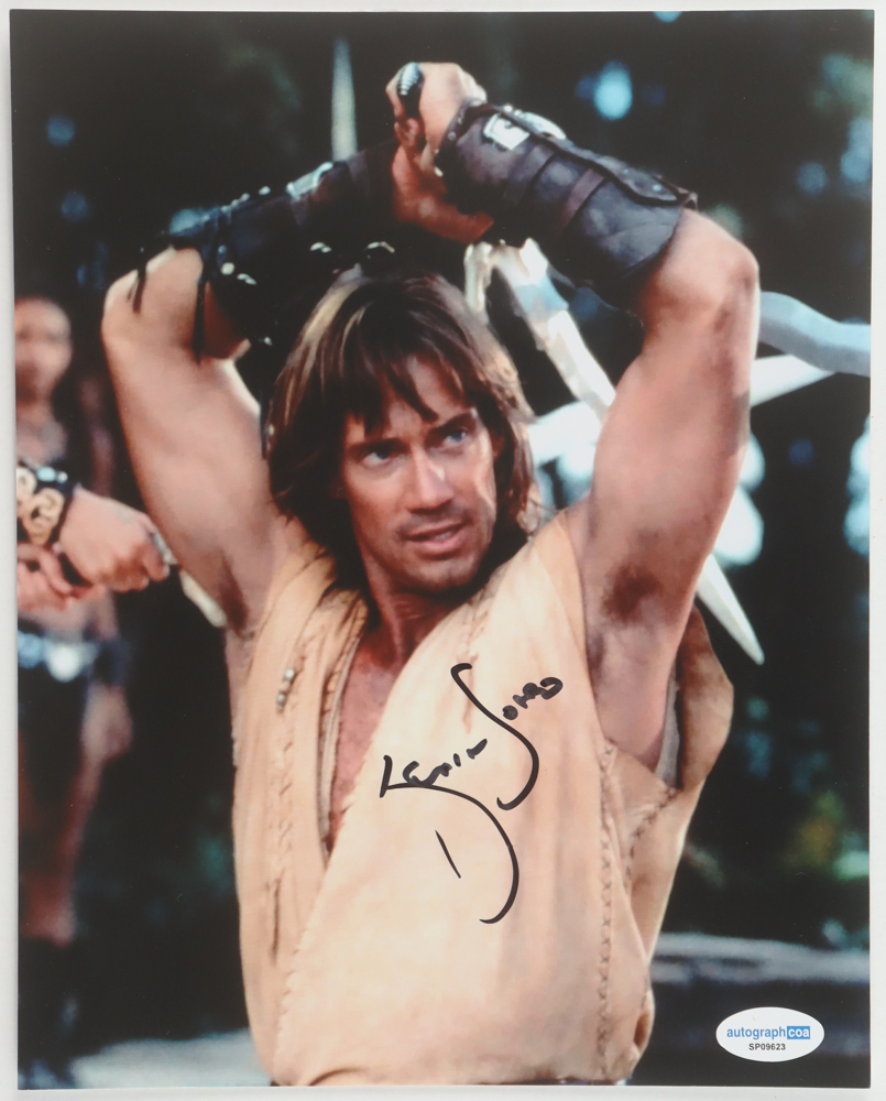 Photo measures 8" x 10" in size and has been hand-signed by Kevin Sorbo.