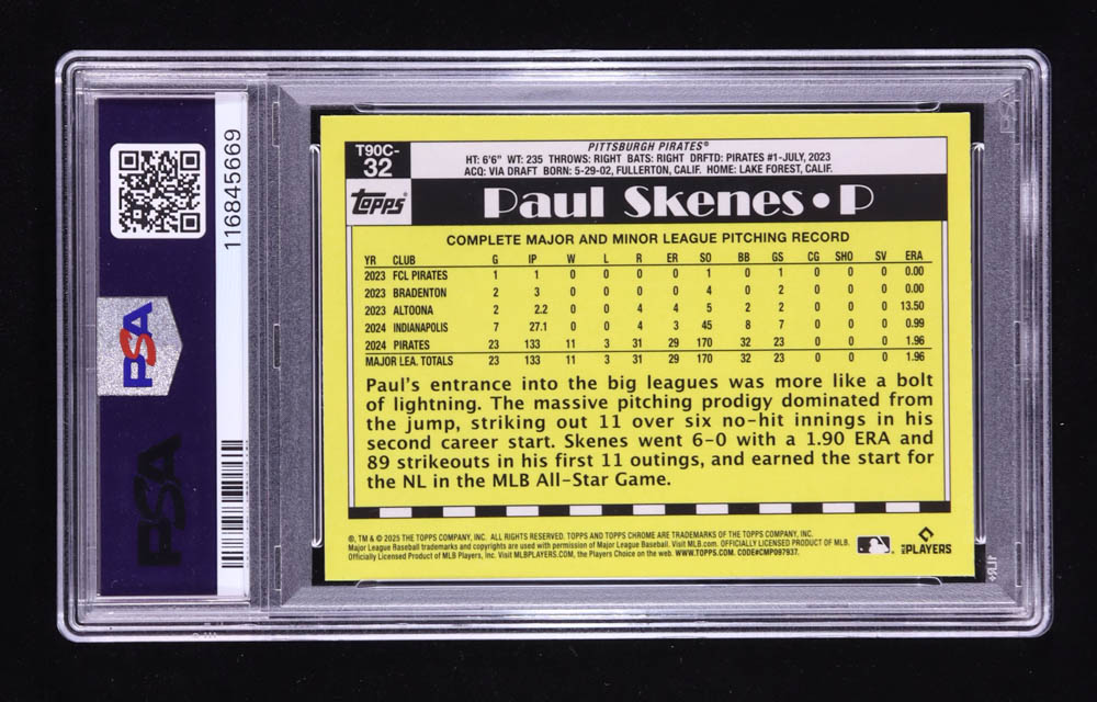 Paul Skenes 2025 Topps '90 Topps Silver Pack Chrome #T90C32 (PSA 10)