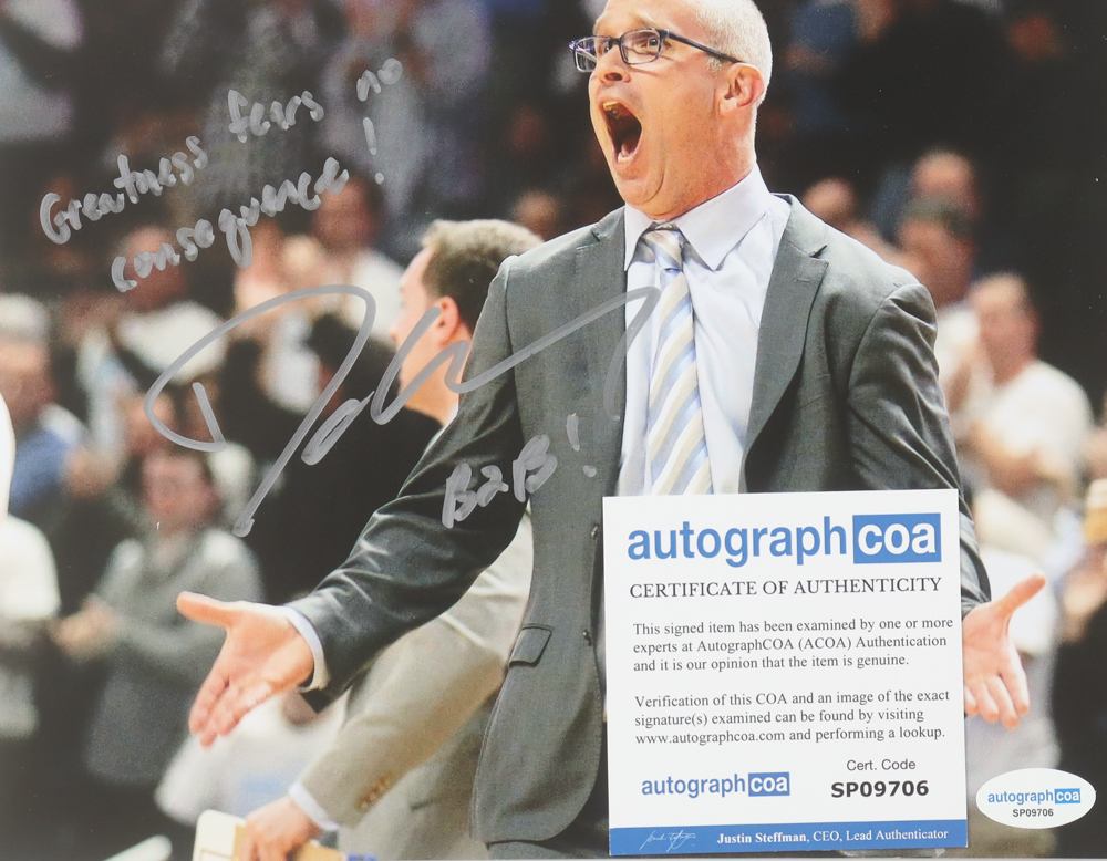 Dan Hurley Signed UConn Huskies 8x10 Photo Inscribed "Greatness Fears No Consequence!" & "B2B!" (ACOA)
