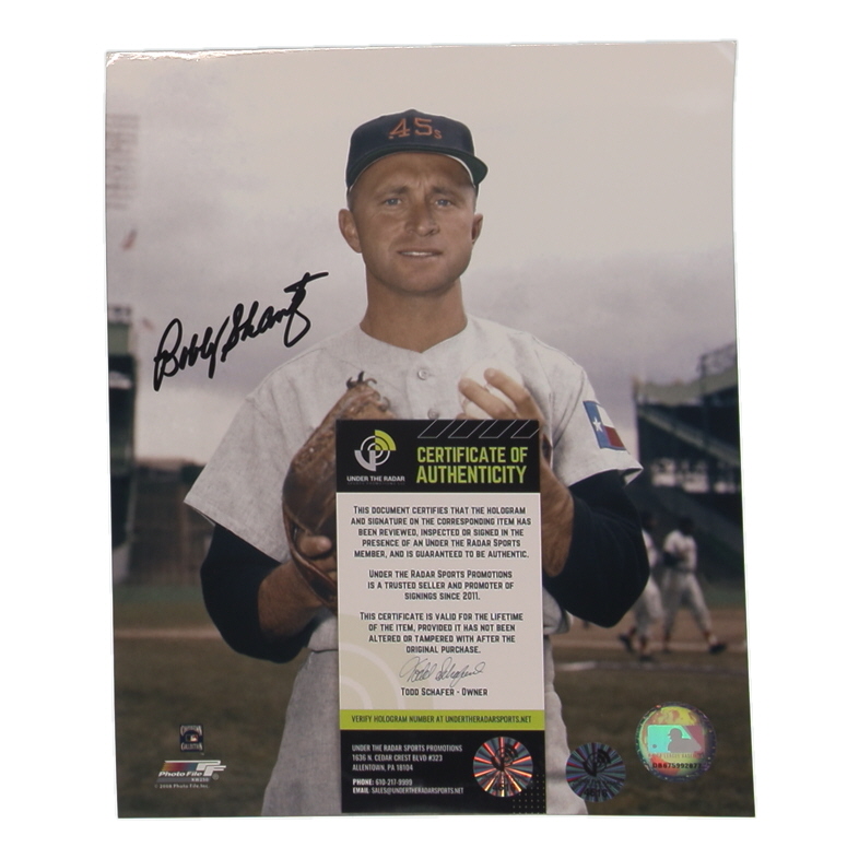 Photo measures 8" x 10" in size. Hand-signed by Bobby Shantz.