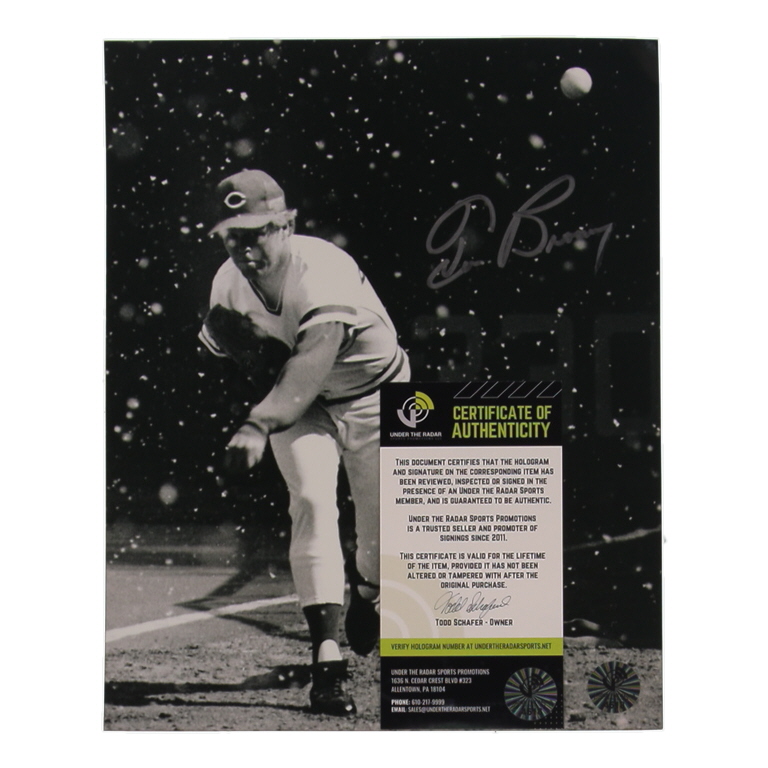 Photo measures 8" x 10" in size. Hand-signed by tom Browning (Cincinnati Reds).