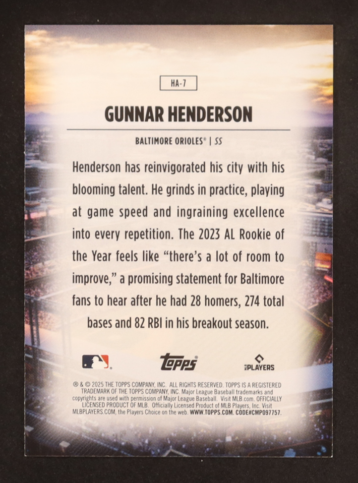 Gunnar Henderson 2025 Topps Home Field Advantage #HA7