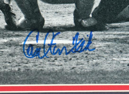 Frame measures 22" x 26" in size. Features a photo that has been hand-signed by Carlton Fisk (Boston Red Sox, HOF).