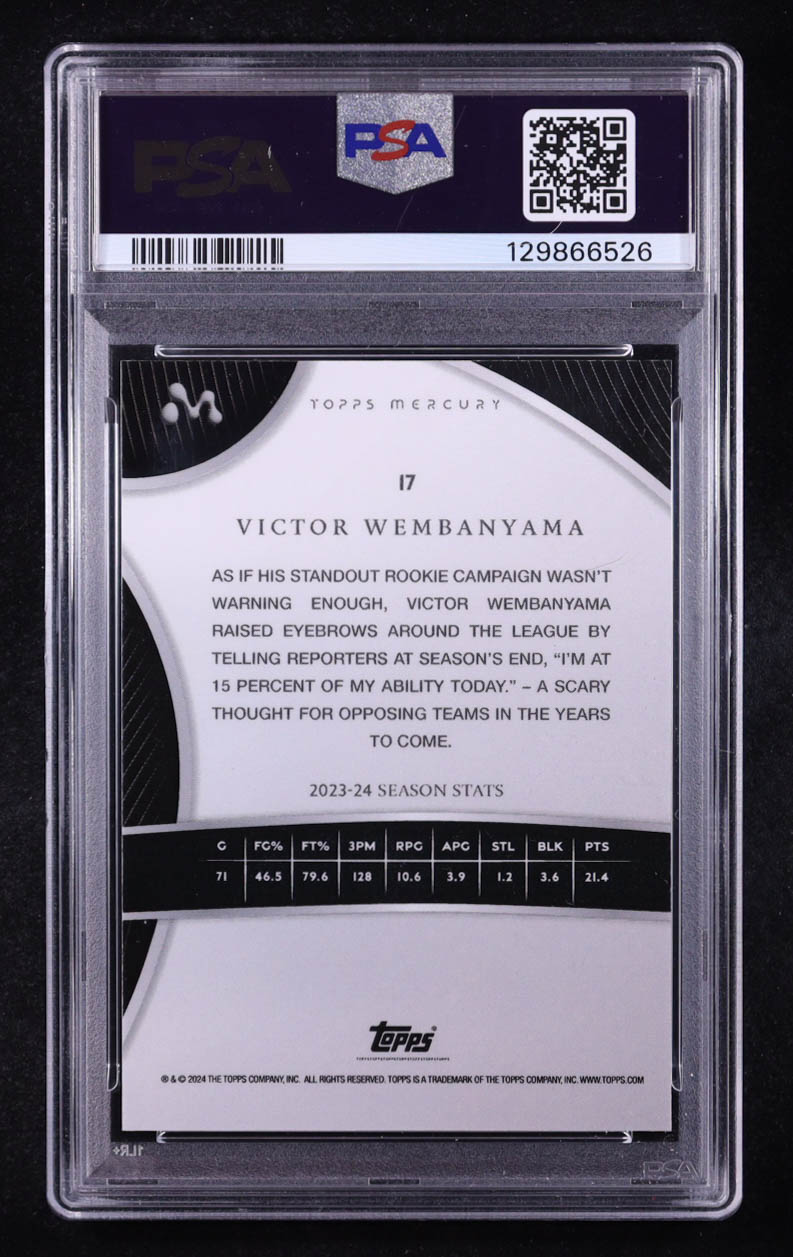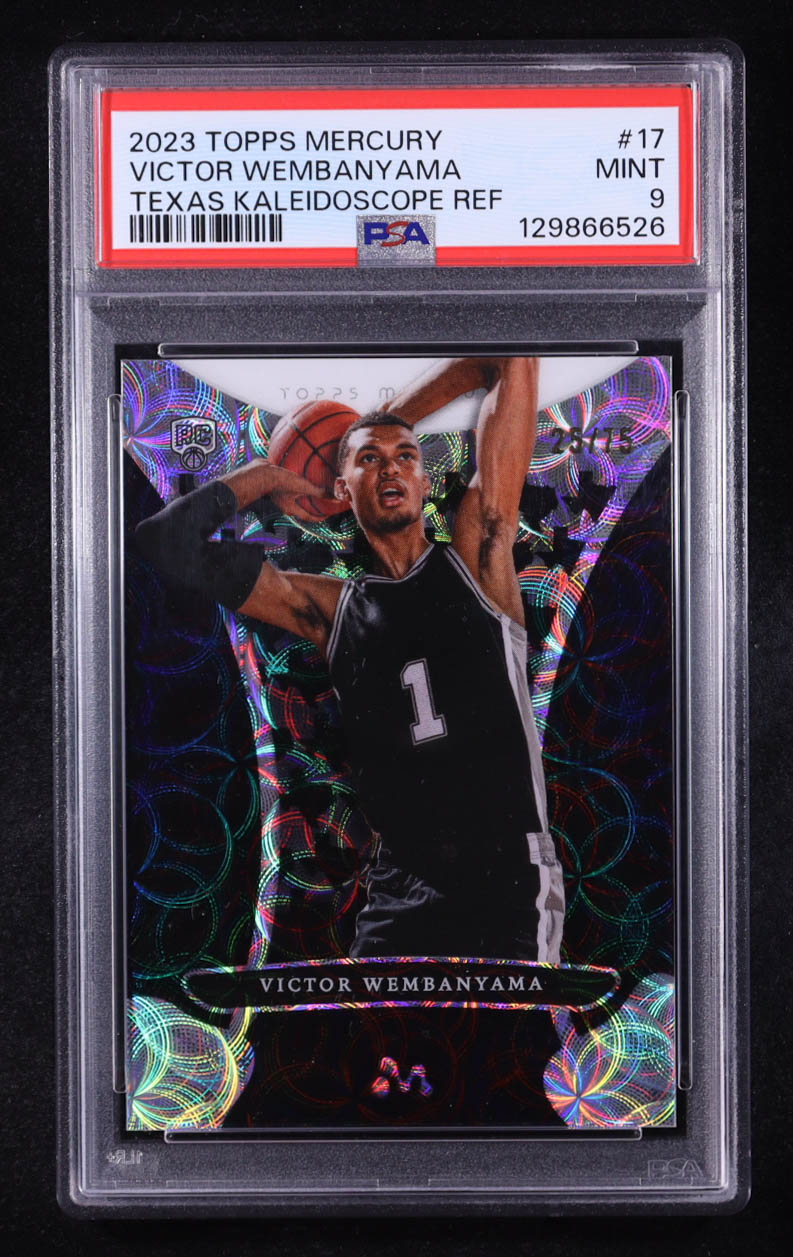 Victor Wembanyama 2023-24 Topps Mercury Victor Wembanyama Texas Kaleidoscope Refractors #17 RC #25/75 (PSA 9)