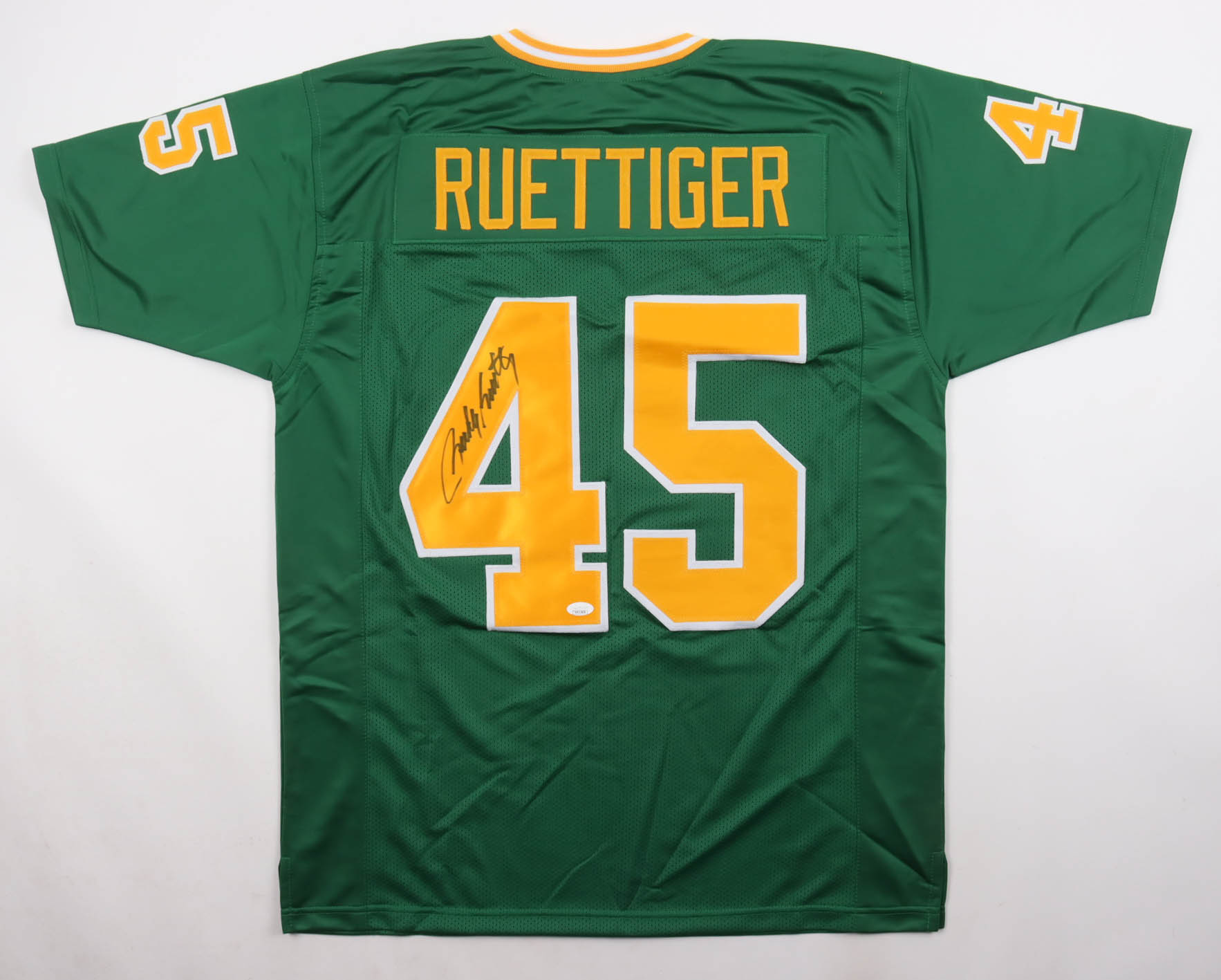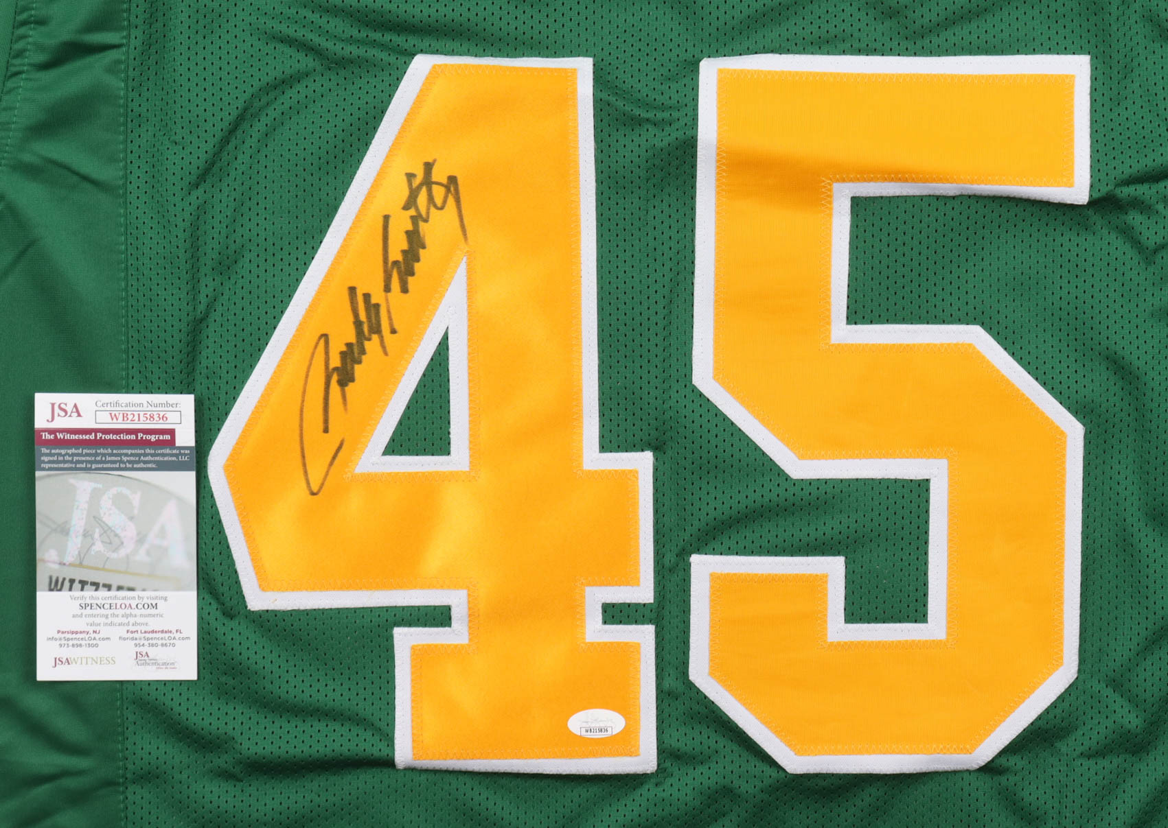 Custom jersey with everything sewn on, size XL. Hand-signed by Rudy Ruettiger (Notre Dame Fighting Irish).