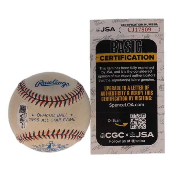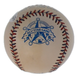 Rawlings Official 1995 All-Star Game Baseball. Hand-signed and inscribed by Nolan Ryan (Texas Rangers, HOF). Please note, ball is naturally toned and stained.