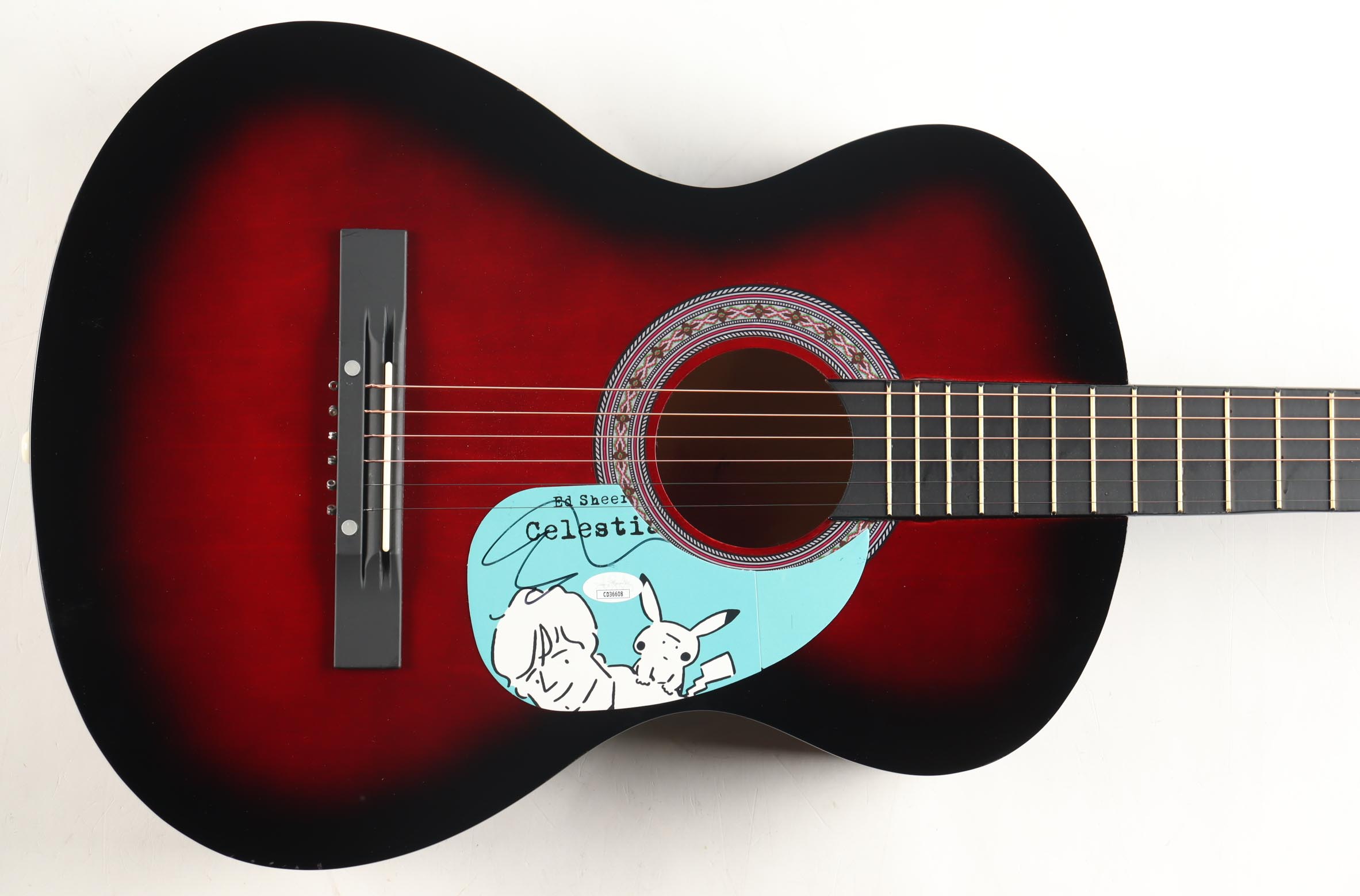 Acoustic Guitar measures approximately 38" in length and has been hand-signed by Ed Sheeran on a CD insert that has been repurposed as the pickguard.
