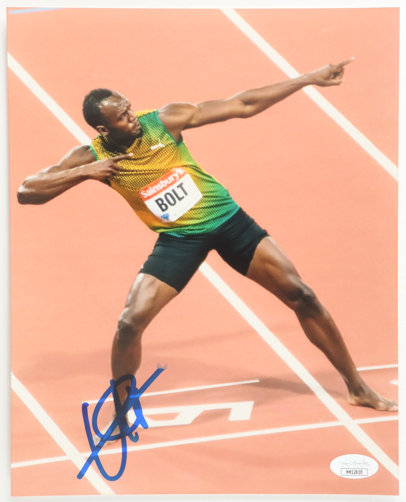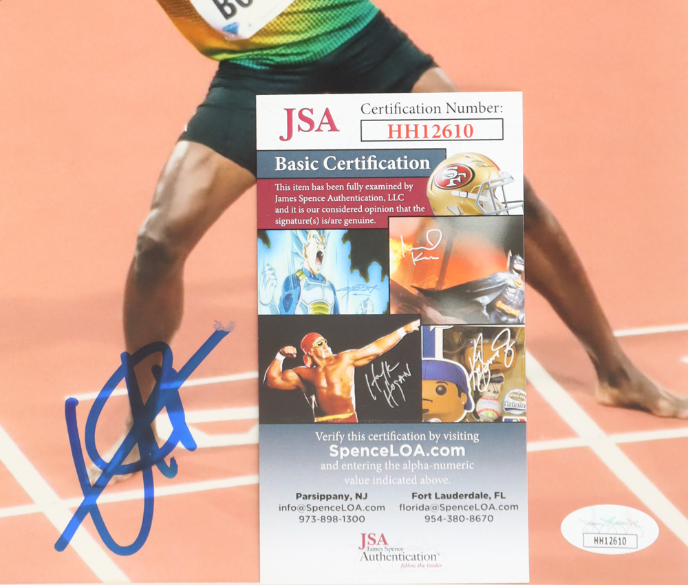 Photo measures approximately 8" x 10" in size and is hand-signed by Usain Bolt.