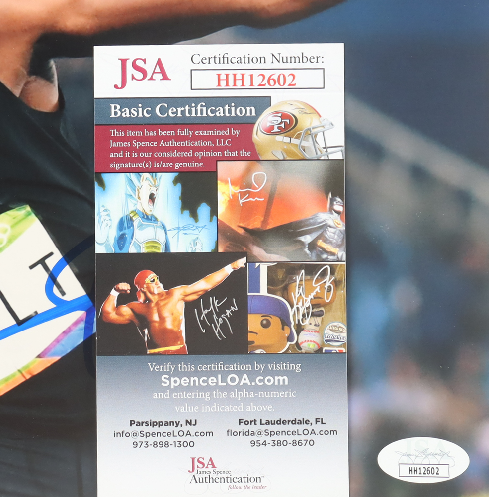 Photo measures approximately 8" x 10" in size and is hand-signed by Usain Bolt. Please note, there is slight corner wear on the photo.