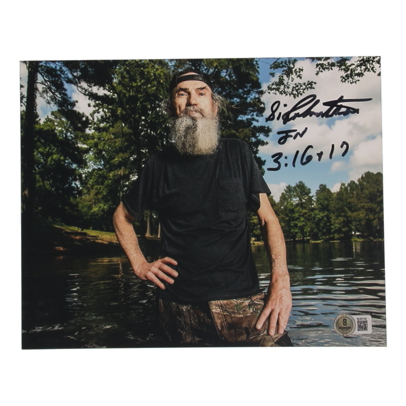 Photo measures 8" x 10" in size and has been hand-signed and inscribed by Si Robertson.
