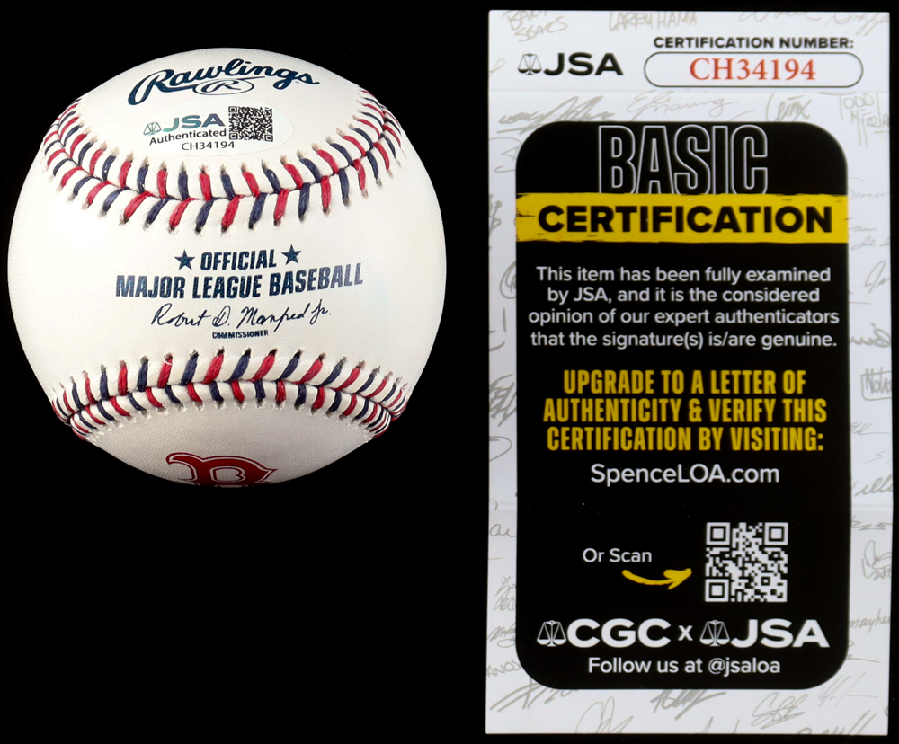 Rawlings Official Major League Boston Red Sox Logo Baseball. Hand-signed by Wilyer Abreu. Please note, there are minor stains throughout the baseball.