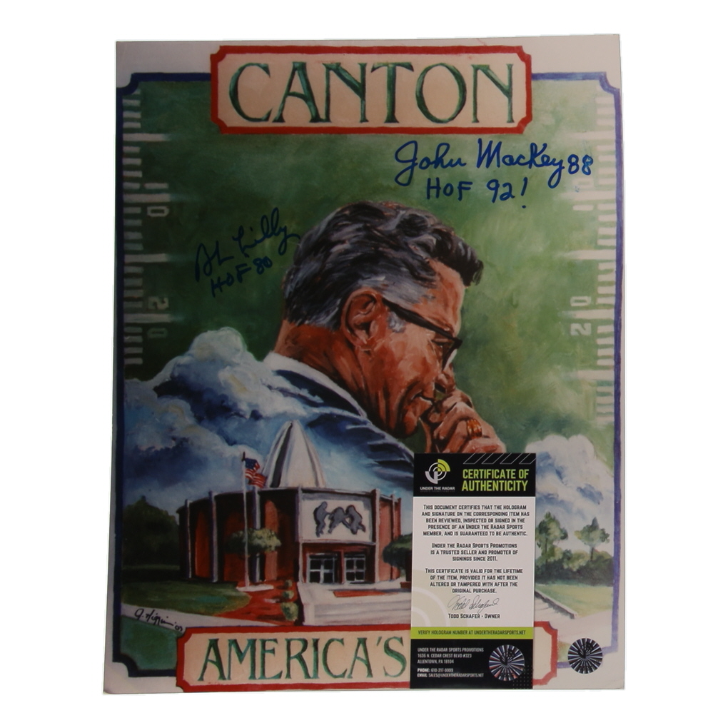 Art print measures 11" x 14" in size. Hand-signed by John Mackey (San Diego Chargers, HOF) and Bob Lilly (Dallas Cowboys (HOF).