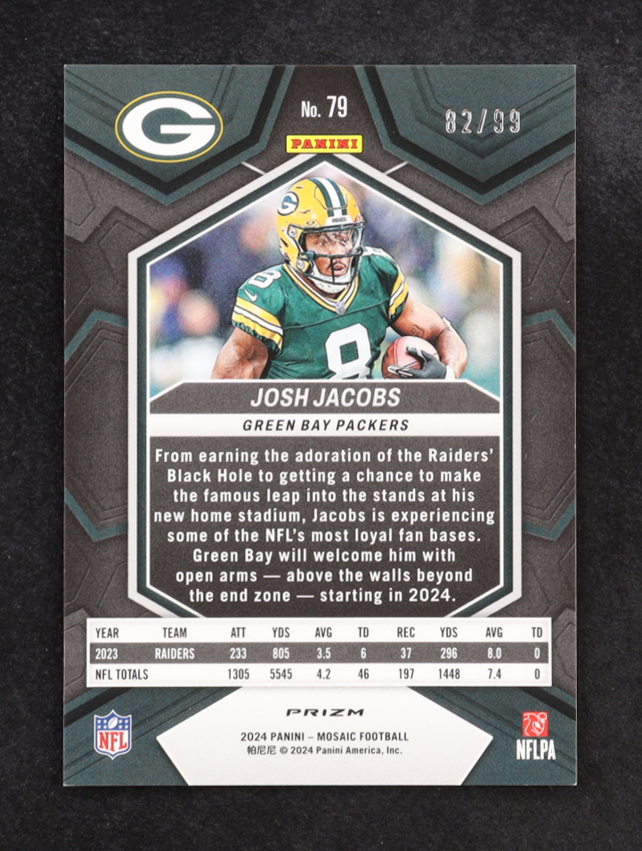 Josh Jacobs 2024 Panini Mosaic Mosaic Blue #79 #82/99