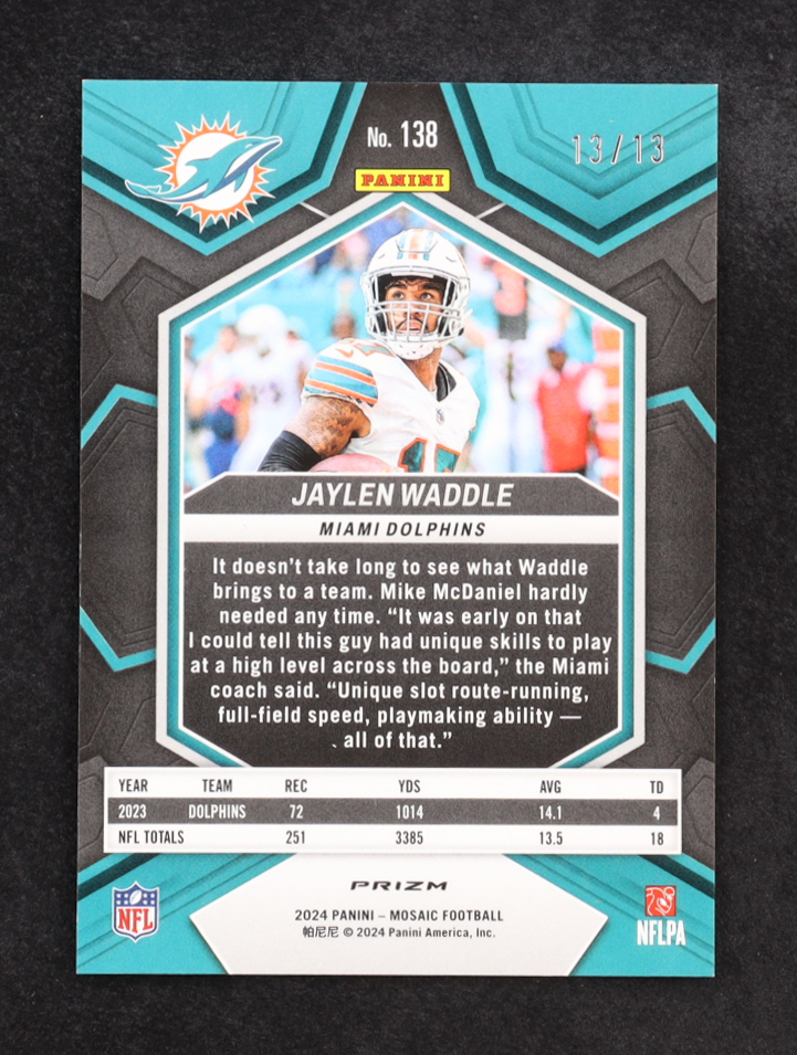 Jaylen Waddle 2024 Panini Mosaic Mosaic Green Swirl #138 #13/13