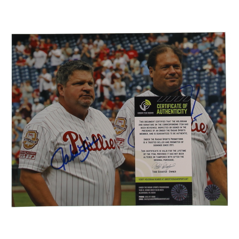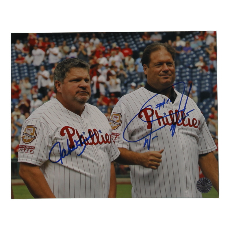 Photo measures 8" x 10" in size. Hand-signed by John Kruk and Darren Daulton (Philadelphia Phillies).
